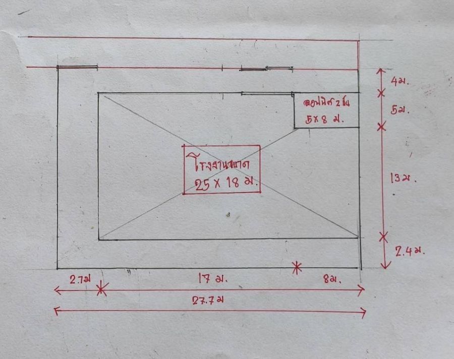 ขนาดพื้นที่ โกดัง 500 ตร.ม กว้าง 15 ม.ลึก 28 ม.