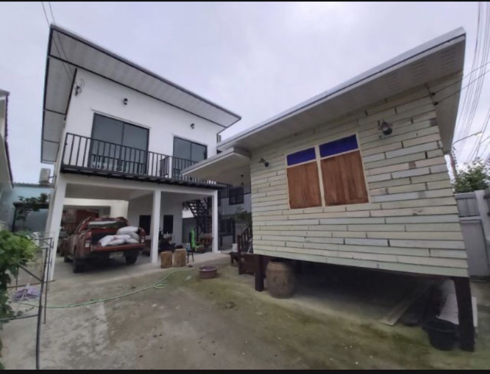 บ้านเดี่ยวไทยโมเดิร์นปลูกสร้างใหม่. 2 อาคาร พร้อมเฟอร์นิเจอร์. อาคาร 1 เป็นบ้านตึก