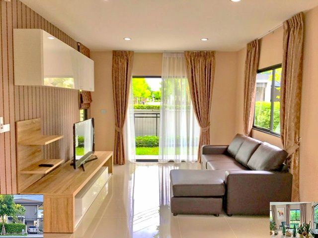 decorated ready to move in. On Nut Rama 9 for sale-rent 2-story detached house APL Ban Thap Chang 1.5km. 38sq.wa. 148sq.m. 26,998B-M garden Baan Klang Muang 3bed 2bath 2parking 4A/C The Paseo Mall