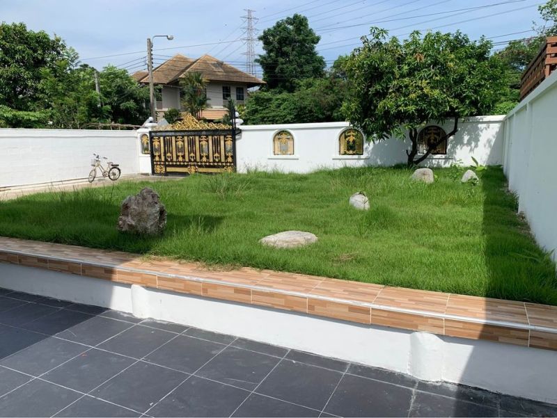 พร้อมเครื่องปรับอากาศ 7 เครื่อง , เครื่องทำน้ำอุ่น 2 เครื่อง , ระเบียนหน้าและหลังชั้น 2 สนามหญ้าหน้าบ้าน