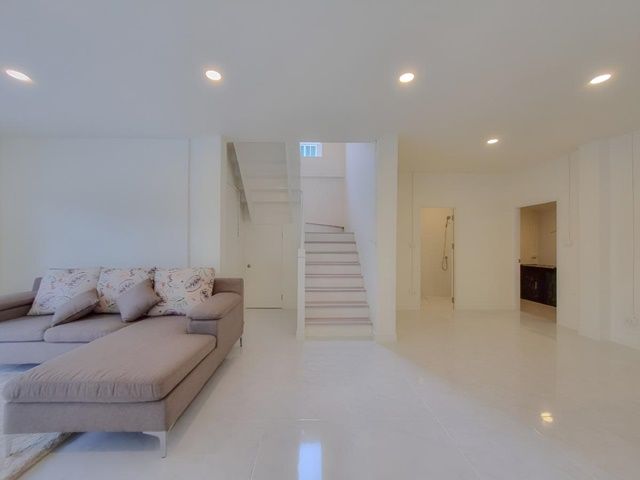 Big C HathaiRat 800m. Fashion LiabKhlongSong Rd. 2-storey detached house 3bed 2 bath 37sq.w.150sq.m. newly decorated nice to live in with furniture MinBuri Technical College 5.3km. Quiet atmosphere shady cool suitable for a home home office. For rent 17,999 b-m easy to find food Hathai Mit Market 1.1 km. can enter and exit via many routes.