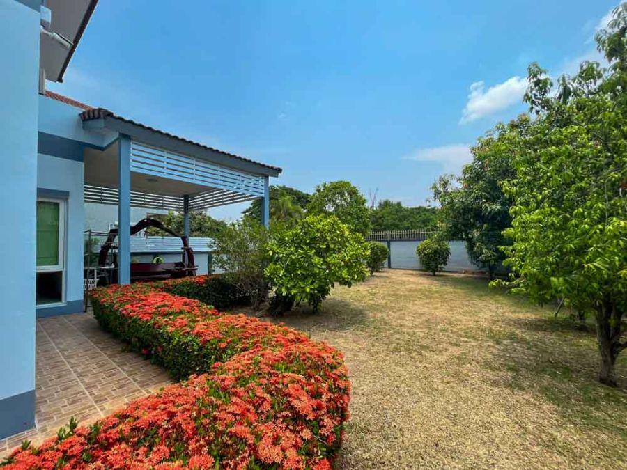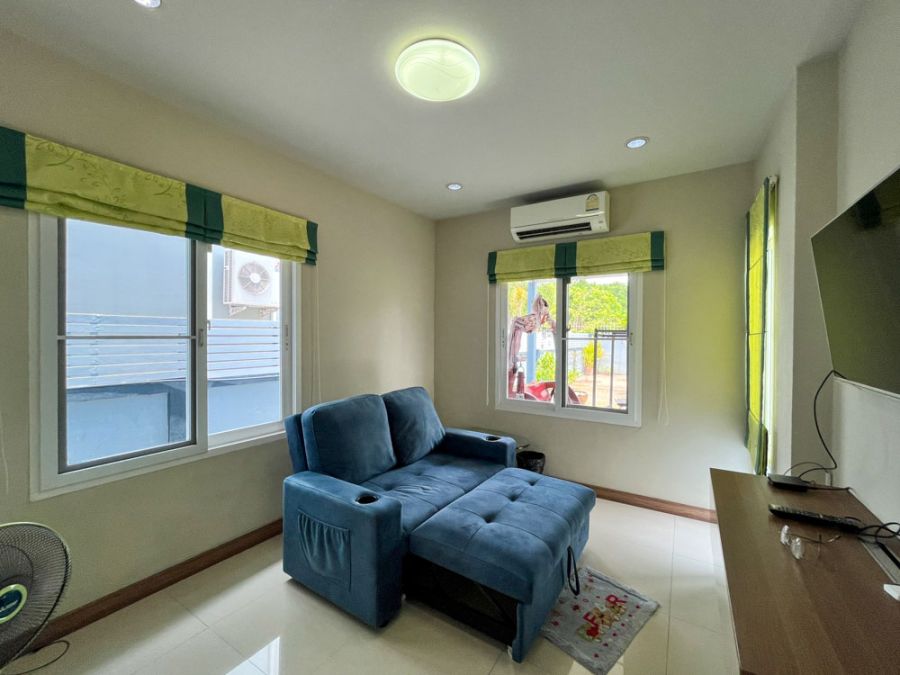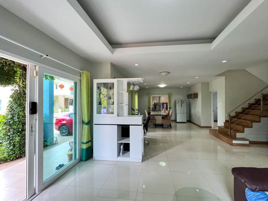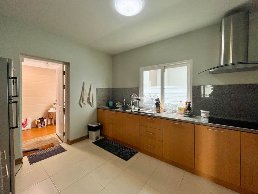 Welcome to your dream rental home at Siriphon Donchan, located in a secure gated community 🛡️. This detached house offers an expansive 250 sq.m. of living space with 4 bedrooms, 4 bathrooms, and 2 parking spaces 🚗. The downstairs bedroom is currently set up as a cozy TV lounge but can easily be transformed into a home office 🖥️. Built with double-layer brick walls throughout, the house provides excellent insulation, saving energy all year round. Situated on the last plot of the street, it offers exceptional privacy and sits on a large 116 sq.wah land plot 🌳✨.