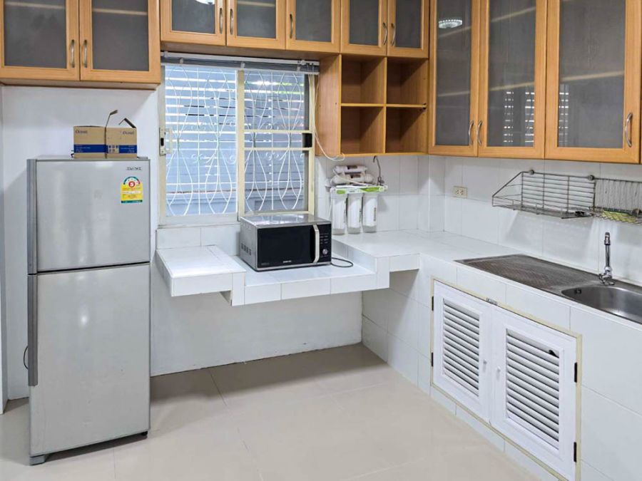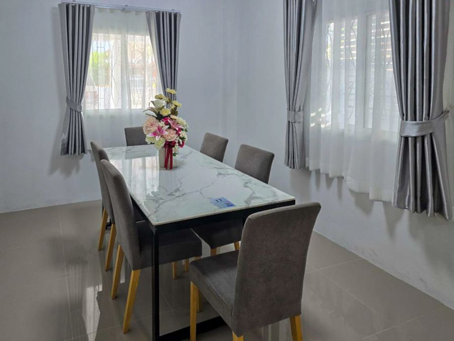 This conveniently located home sits on 89 sq.wah (356 sq.m.) of land, with over 200 sq.m. of usable space 🌤️. It features 3 bedrooms, 3 bathrooms (one with a bathtub), and comes fully furnished with complete electrical appliances in every room, including TVs and air conditioners throughout 🛋️🍽️. The kitchen is fully equipped and includes a 6-seater marble dining table. Covered parking for up to 4 cars. Best of all – a saltwater swimming pool (4x8m, 1.4m deep) facing north for all-day shade and comfort 🏊♂️.