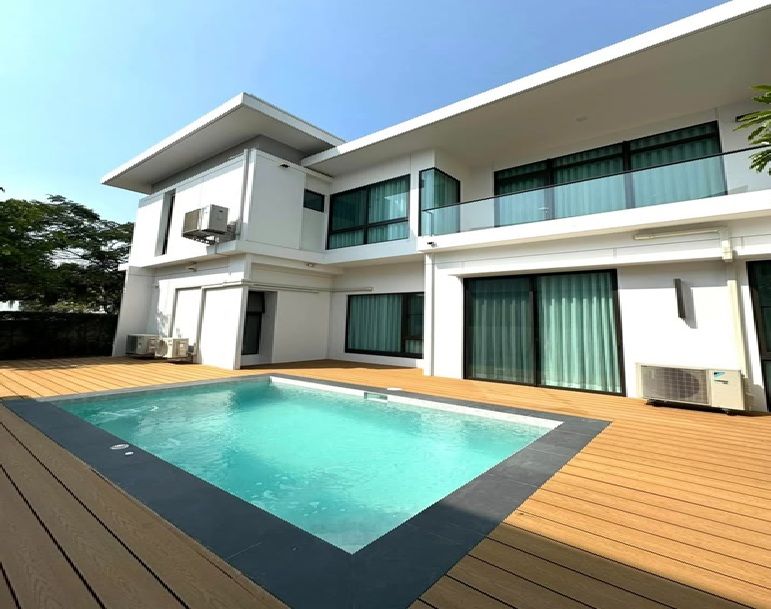 For Rent ให้เช่าบ้านเดี่ยว 2 ชั้น หมู่บ้าน มัณฑนา บางนา กม.15 บ้านสวยมาก พร้อมสระว่ายน้ำในบ้าน / พื้นที่ดิน 110 ตารางวา พื้นที่ใช้สอย 350 ตารางเมตร มี 4 ห้องนอน 5 ห้องน้ำ จอดรถได้ 4 คัน / บ้านตกแต่งพร้อม / แอร์ทั้งหลัง / มีสระว่ายน้ำในบ้าน / เฟอร์นิเจอร์ครบ Fully Furnished / อยู่อาศัย / Chinese Welcome