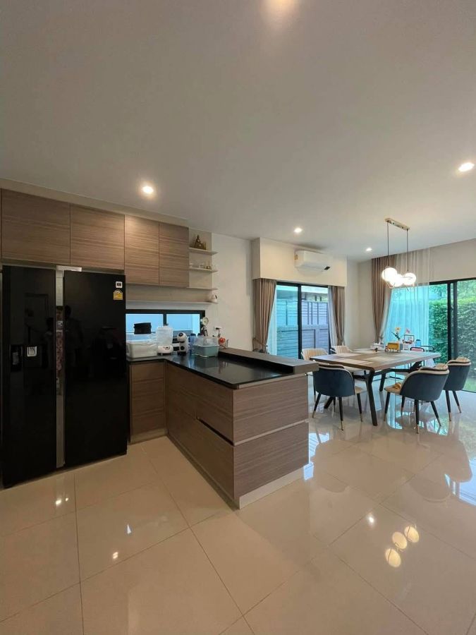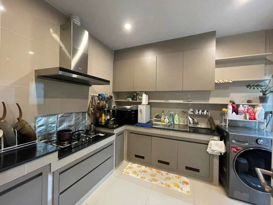 ครัวบิวท์อินพร้อมเตาฝัง และฮูด แถมตู้เย็น และเครื่องซักผ้า