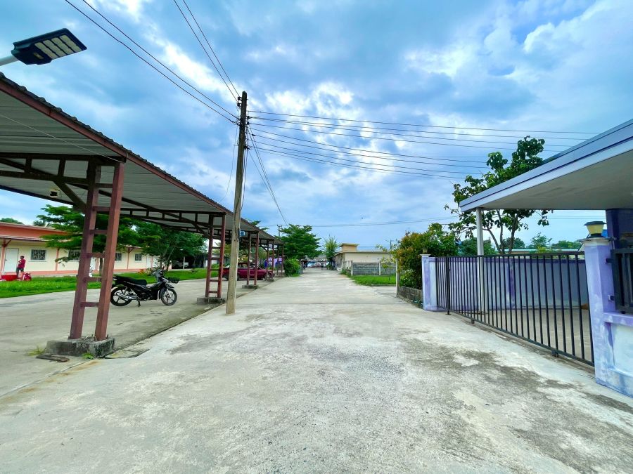 - ด้านหน้าที่ดินติดถนนสาธารณประโยชน์เป็นถนนคอนกรีต รถยนต์ขับสวนกันได้