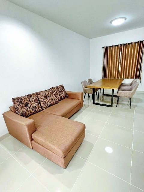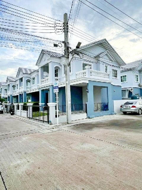Huachiew Chalermprakiet Village 4.1 km. Wat Sriwarinoy Rd. APL Suvarnabhumi 5.3km. For rent 2-storey twin house new corner house 56sq.w. 230sq.m.18-19,999 B-M 3 bed 2 bath community area convenient for shopping Thipkasorn Market 1.8 km.Bangna-Trad Rd.Suvarnabhumi Airport