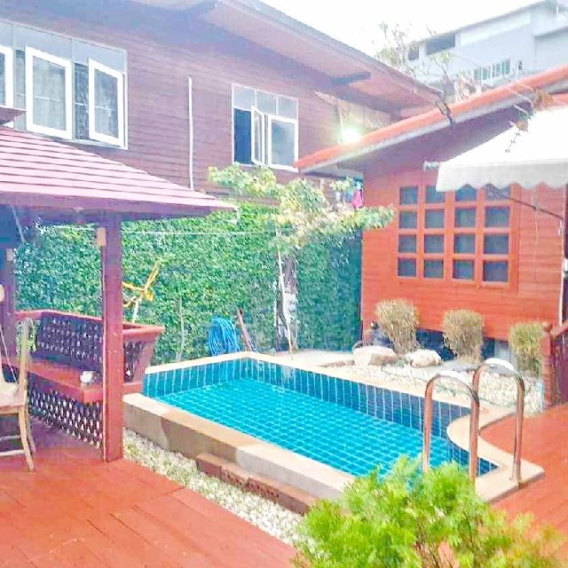 The Mall Ngamwongwan 700 m.MRT KhaeRai 2.2km. For rent pool villa vacation home 38 sq.wa.148 sq.m. shady atmosphere Ngamwongwan 10-18 Dhurakij Pundit University 2.3 km.2 bed 1 bath with furniture swimming pool fitness 28,999 B-M community area shopping convenient transportation Ngamwongwan Road. Prachachuen
