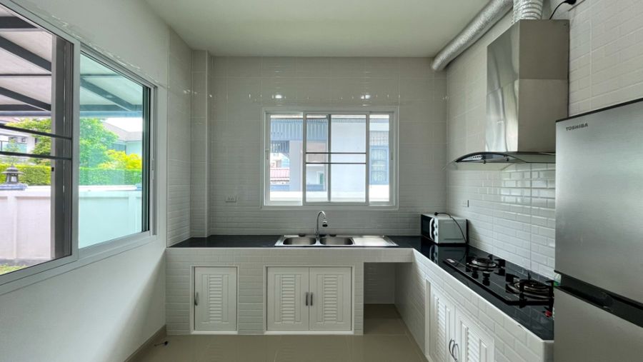 The house is located in a quiet, secure community and is close to amenities like Kad Farang Village and several international schools. Just a 20-minute drive to the airport.