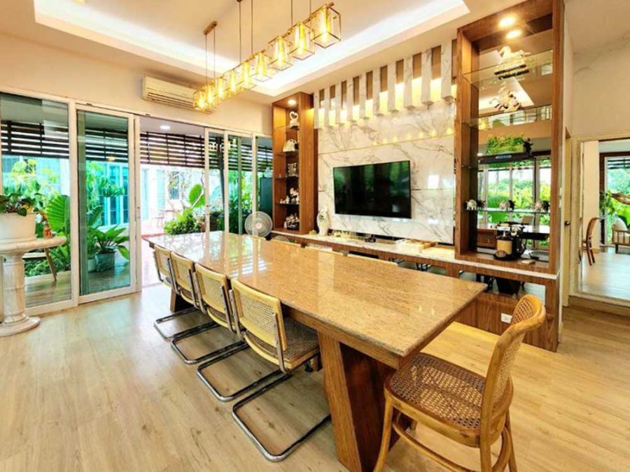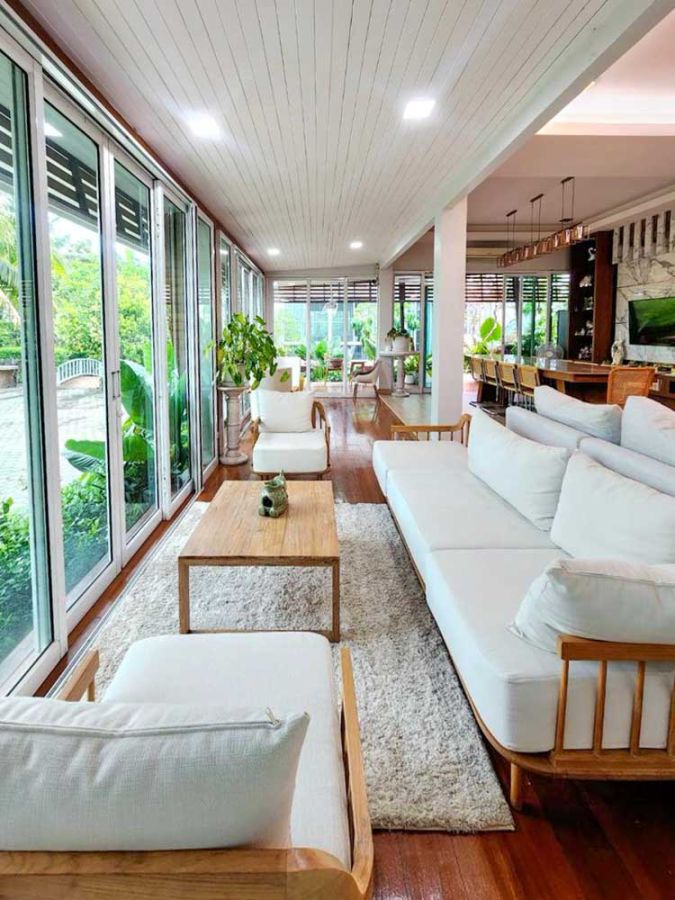 - ที่ดินขนาดใหญ่ประมาณเกือบ 4 ไร่ และพื้นที่ใช้สอย 300 ตร.ม. เป็นสวนขนาดใหญ่ที่มีผลไม้เกือบทุกชนิดมากมายให้เก็บกินได้ตลอดทั้งปี ประกอบด้วยอาคารทั้งหมด 6 หลังในบริเวณเดียวกัน บ้านหลังนี้มีพื้นที่ใช้สอยขนาดใหญ่ มีทั้งหมด 5 ห้องนอน 6 ห้องน้ำ -เกสต์เฮ้าส์พร้อมบ่อปลาล้อม