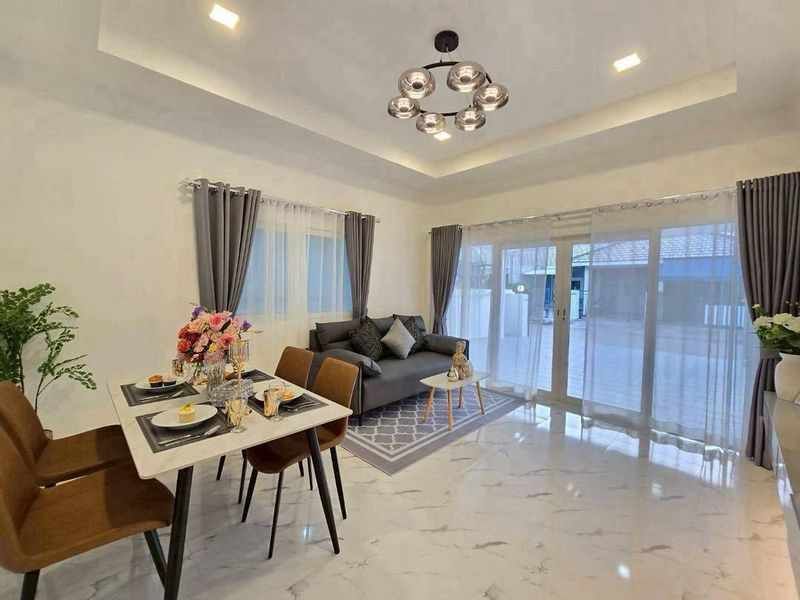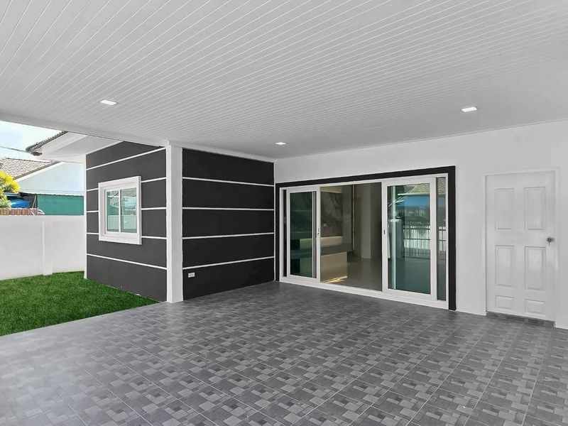 Here it is, a corner house for rent, spacious and airy 👉Price: 35,000 baht/month. The house has beautiful and private surroundings. You'll definitely be happy living there."