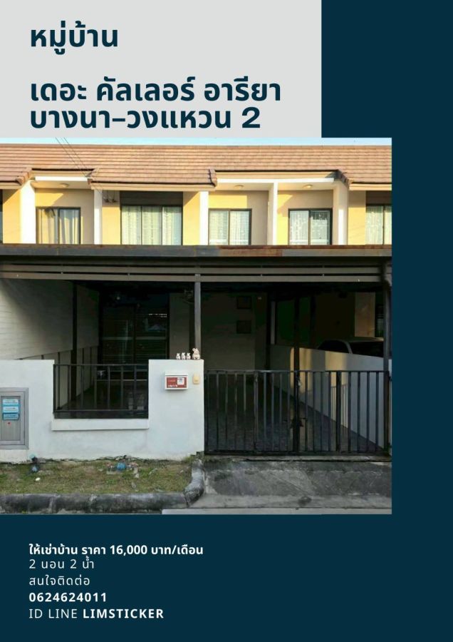 ให้เช่า ทาวน์โฮม 2 ชั้น โครงการ เดอะคัลเลอร์อารียาบางนา-วงแหวน 2 มีเฟอร์ ราคา 16,000 บาท/เดือน