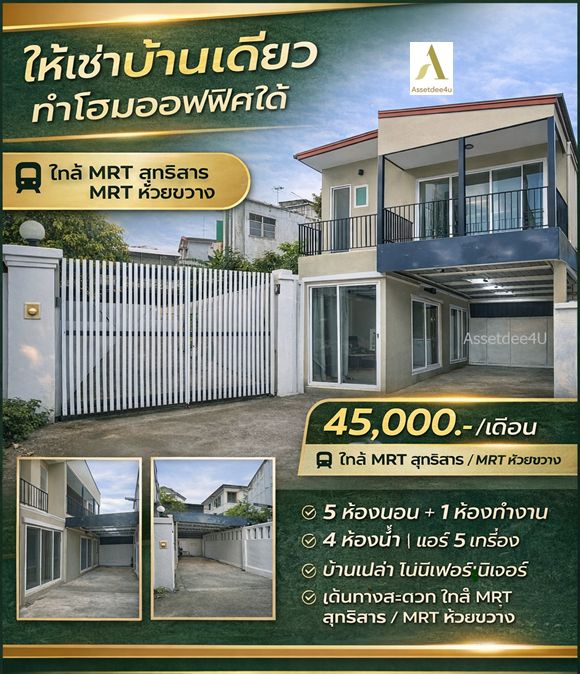 AH632 ให้เช่าบ้านเดี่ยว ห้วยขวาง ใกล้ MRT สุทธิสาร