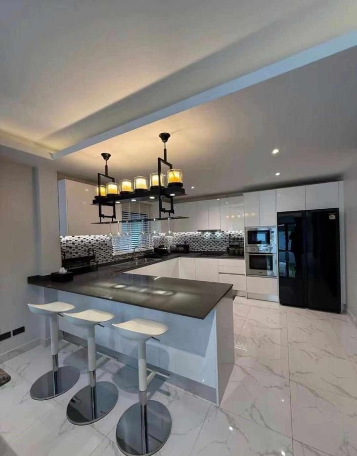 ~ ตกแต่งเฟอร์นิเจอร์ เครื่องใช้ไฟฟ้า ใหม่ครบทั้งบ้าน ชุดครัวบิวอินยุโรปในบ้าน และ ชุดครัวไทยนอกบ้าน