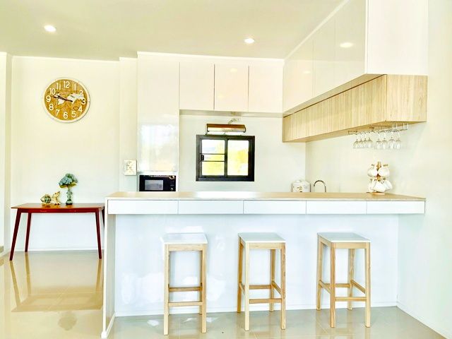 ครัวจัดเต็ม เตาไฟฟ้า เตาอบ ไมโครเวฟ กระทะ เครื่องปิ้งขนมปัง กาน้ำร้อน หม้อชาบู เตาปิ้งย่าง พร้อมน้ำดื่ม น้ำแข็ง และอาหารเช้า ขนมปัง ไข่ กาแฟ โอวัลติน