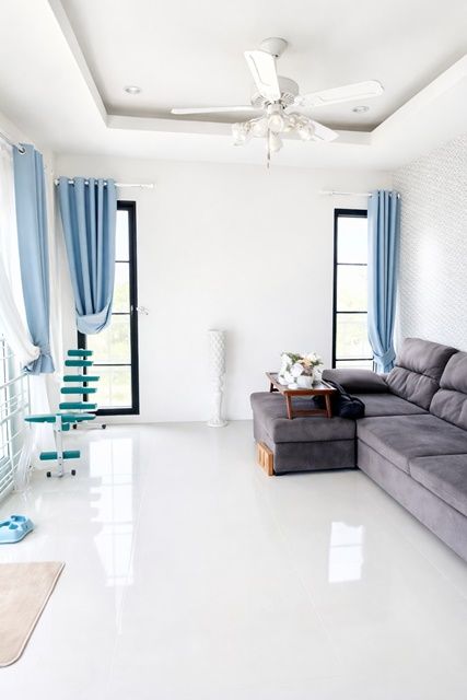 บ้านติดเหล็กดัดอย่างดี พร้อมมุ้งลวดและผ้าม่านทั้งหลัง