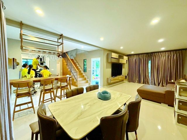 บ้านตกแต่งพร้อมอยู่ เฟอร์นิเจอร์ และเครื่องใช้ไฟฟ้าครบ เช่น เตียง ทีวี ตู้เย็น เครื่องซักผ้า เครื่องปรับอากาศ เครื่องทำน้ำอุ่น พร้อมครัวบิวอิน เตาไฟฟ้า ฮูดดูดควัน ไมโครเวฟ และเครื่องกรองน้ำ