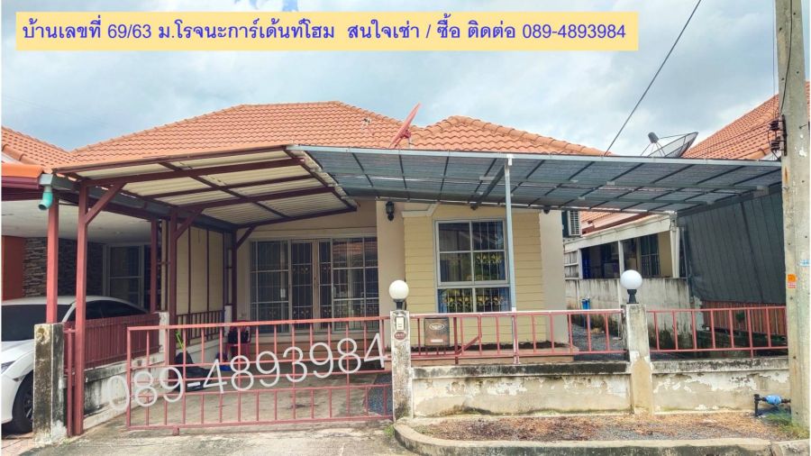 ให้เช่าทาวน์เฮาส์ชั้นเดียว ในหมู่บ้านหมู่บ้าน โรจนะการ์เด้นโฮม ขนาด 3 ห้องนอน 2 ห้องน้ำ ห้องนอนหลักติดแอร์ มีครัวและคอนโซลอ่างล้างจาน ห้องโถง และที่จอดรถในบ้าน ติดเหล็กดัดและมุ้งลวดกันยุงทั้งหลัง