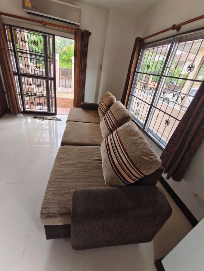 ห้องรับแขก เก้าอี้รับแขก 1 ชุด พร้อมหมอนพิง 3 ใบ หมอนอิง 3 ใบ ห้องนั่งเล่น พร้อมโต๊ะทำงาน Build In แอร์ 18000 BTU