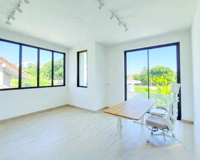 ห้องทำงานขนาดใหญ่ วิวสีเขียว แสงธรรมชาติเข้าถึง พร้อมระบบไฟ 3 โทน เหมาะสำหรับทำงานหรือไลฟ์ขายของ