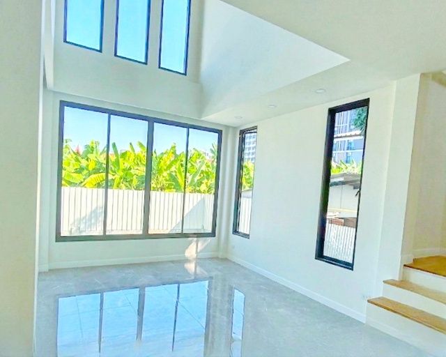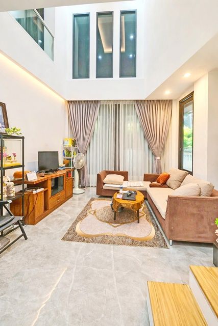ตัวบ้านออกแบบแบบ Double Volume เพดานสูง 3.2 เมตรทั้งสองชั้น