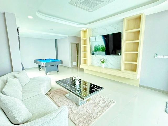 Chaiyapruek Rd local market 800m. 102 sq.wa. 300 sq.m. Jomtien Rd AIRBNB Pool Villa For rent 5bed 5bath 99,989 B-M spacious living area private swimming pool fully furnished quiet atmosphere suitable for residence or business prime Pattaya location close to community Jomtien Beach 2.5 km. convenient access to main roads