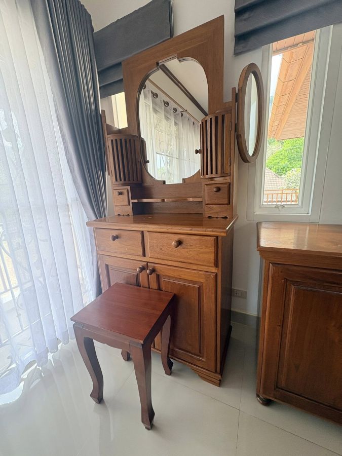 The villa is beautifully furnished with high-quality solid wood furniture, creating a warm and elegant atmosphere throughout the house.