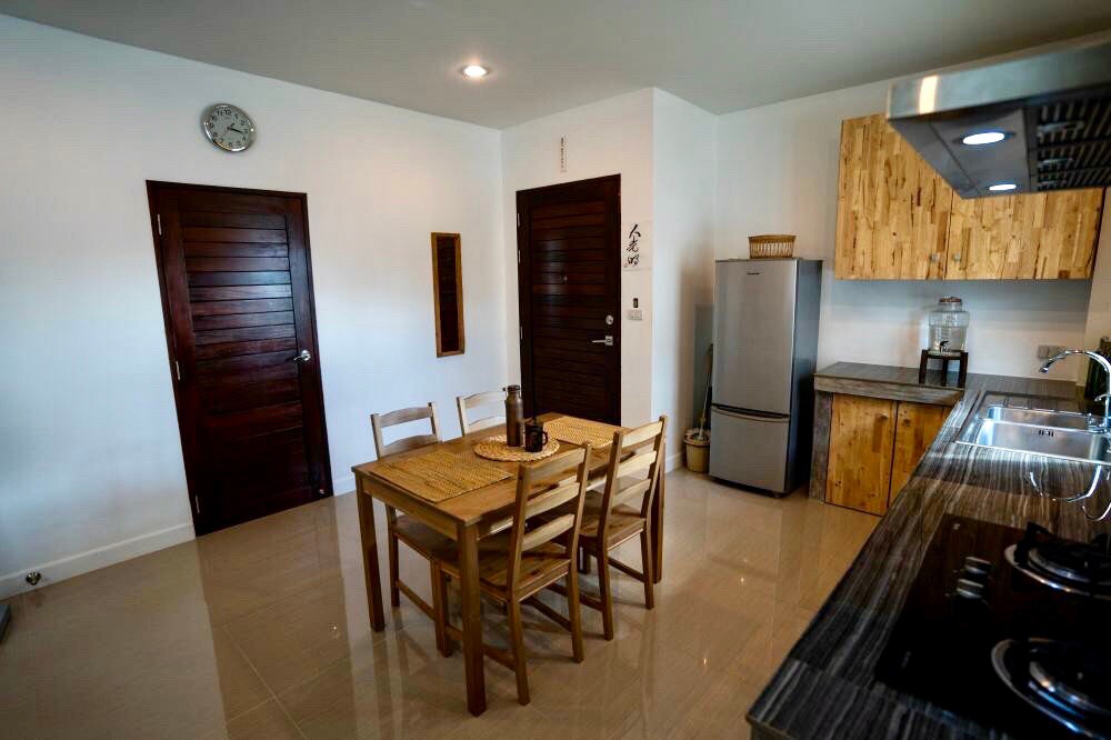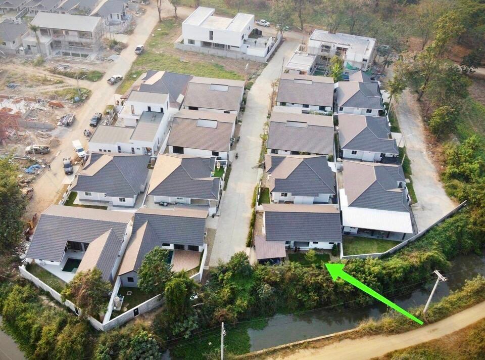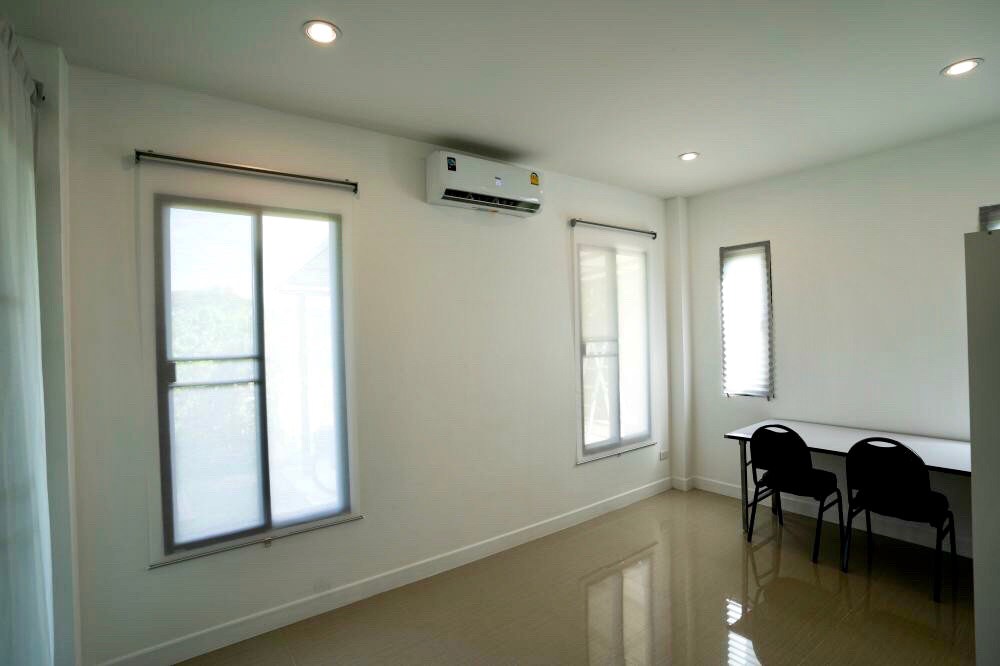 3 bedroom 1 living room/western kitchen, 2 toilets, 2 car parking garage, big garden with extra land (because edge of Moobaan). Air conditioning in all rooms. Built in kitchen with real wood cabinets. 1000 L water tank with automatic pump.