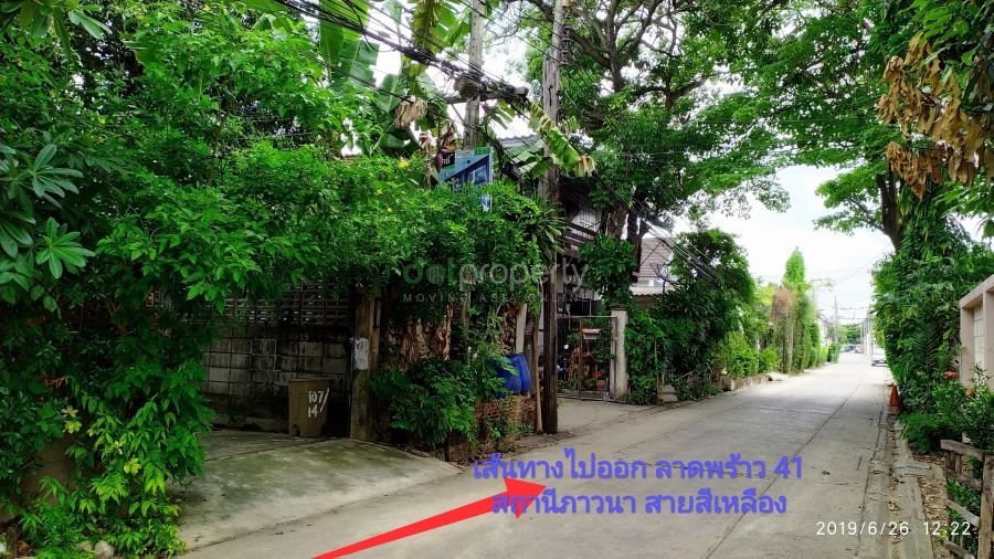 ขายที่ดิน 60 ตรว.มีสิ่งปลูกสร้างเป็นบ้านไม้เก่าสภาพ 40 ปี หน้ากว้าง 9 เมตร ลึก 32 เมตร อยู่ถนนลาดพร้าว 41 (ซอยภาวนา) ปากซอยเป็นสถานีรถไฟฟ้าสายสีเหลืองสถานีภาวนา 600 เมตร (กำลังก่อสร้าง แล้วเสร็จปลายปี 2563) เชื่อมต่อMRTสถานีลาดพร้าว เข้าออกได้หลายทางเช่น ถ.รัชดา ศาลอาญารัชดา ม.ราชภัฎจันทรเกษม ม.เกษตรศาสตร์ สถาบันการบินพลเรือน รพ.เปาโลเกษตร รพ.เปาโลสยาม (ซอยโชคชัย 4) วัดลาดพร้าว ถนนลาดพร้าว-วังหิน สน.พหลโยธิน เมเจอร์รัชโยธิน ห้างเซ็นทรัลลาดพร้าว โลตัสวังหิน บิ๊กซีลาดพร้าว ตลาดสดสะพาน2 ซอยโชคชัย4 สน.โชคชัย ห้างยูเนี่ยนมอลล์ ตลาดนัดสวนจตุจักร สวนรถไฟ