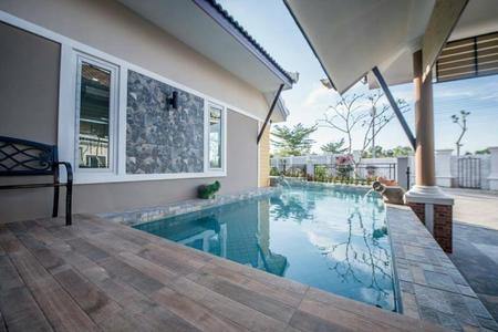 พร้อมสระว่ายน้ำ สงบร่มรื่น สวนหน้าบ้านขนาดใหญ่