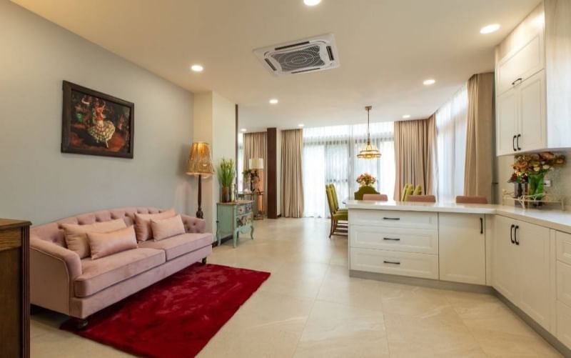 ห้องนั่งเล่นที่กว้างขวางและเปิดโล่ง