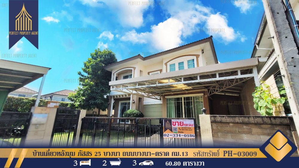 บ้านเดี่ยวหลังมุม ภัสสร 25 บางนา ถนนบางนา-ตราด กม.13 บางพลี พร้อมอยู่