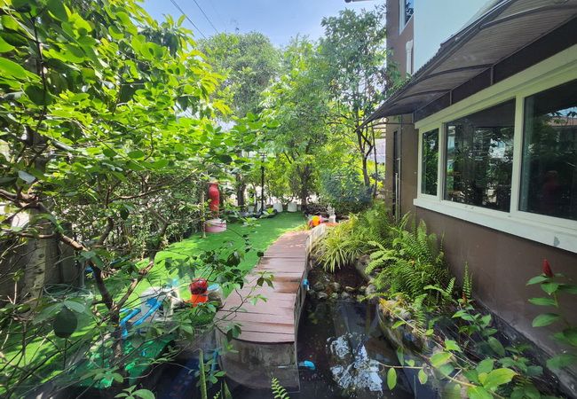 – จัดสวนสวยข้างบ้าน พร้อมระบบน้ำตกตามหลักฮวงจุ้ย