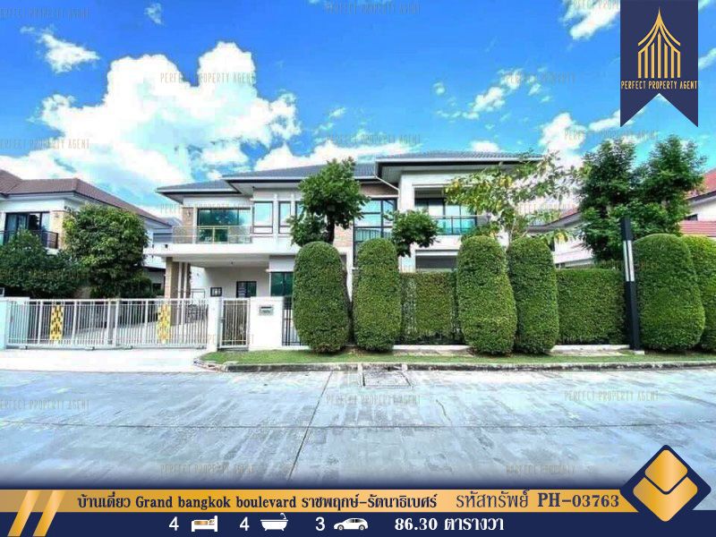 บ้านเดี่ยว Grand bangkok boulevard ราชพฤกษ์-รัตนาธิเบศร์ หน้าบ้านไม่ชนใคร ตกแต่งพร้อมอยู่