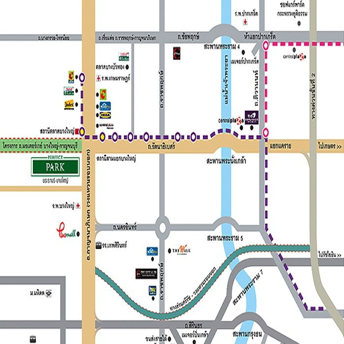 - ใกล้รถไฟฟ้าสายสีม่วง สถานีตลาดบางใหญ่ มีShuttle Bus ของโครงการไปส่งที่สถานีรถไฟฟ้าและห้างสรรพสินค้าชั้นนำใกล้เคียงโครงการ