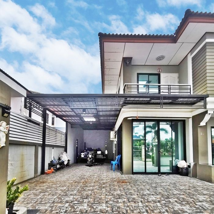 - ต่อเติมหลังคาที่จอดรถ+ปูกระเบื้อง