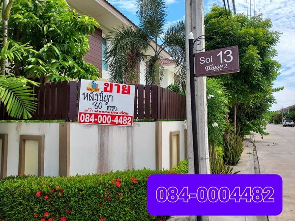 ขายบ้านเดี่ยว 2 ชั้น หลังมุม หมู่บ้านชวนชม พาร์ค 2 ไทรน้อย เนื้อที่ 80 ตรว.