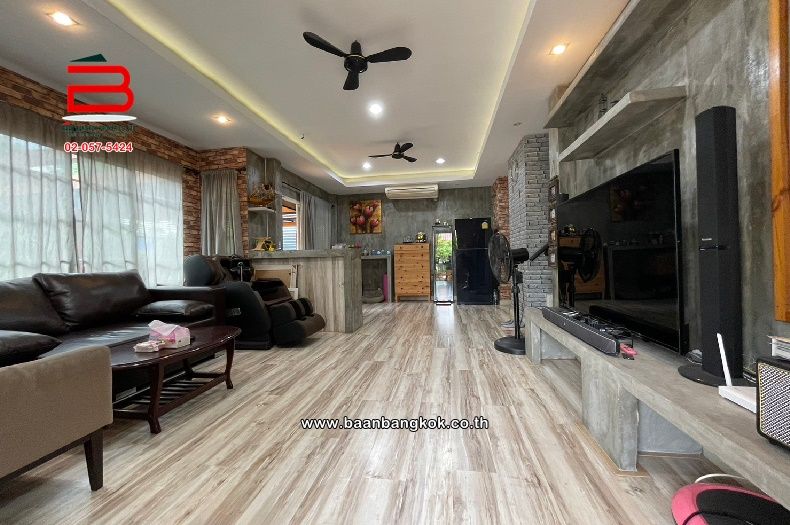 การตกแต่ง : มีเฟอร์บางส่วน ห้องโถงปูกระเบื้อง ชั้นบนปูกระเบื้องยางลายไม้ มีเคาน์เตอร์บาร์ ฝ้าหลุมซ่อนไฟ แถมแอร์ครบทุกห้อง