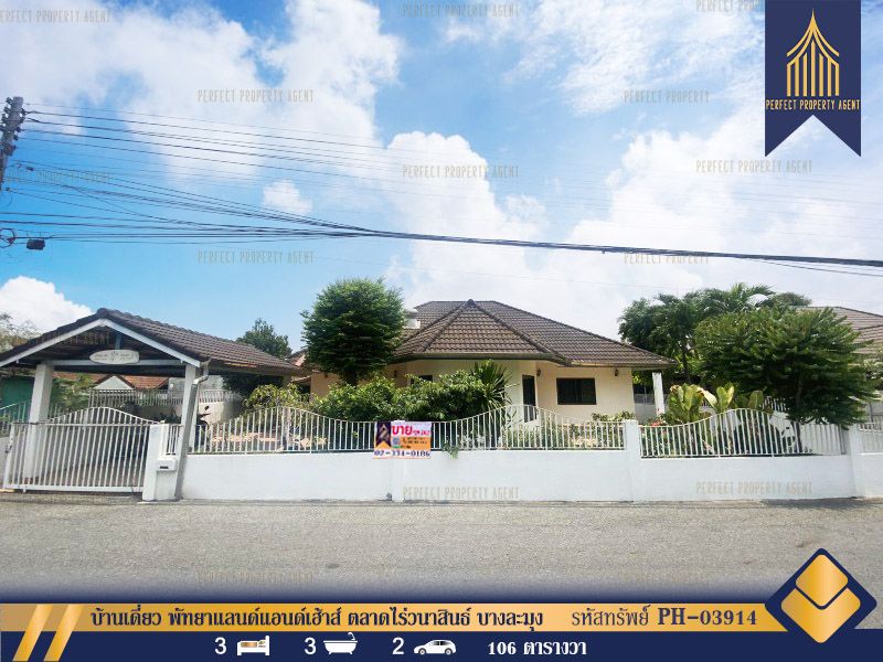 บ้านเดี่ยว พัทยาแลนด์แอนด์เฮ้าส์ ตลาดไร่วนาสินธ์ พัทยา บางละมุง แถมเครื่องปรับอากาศทุกห้อง
