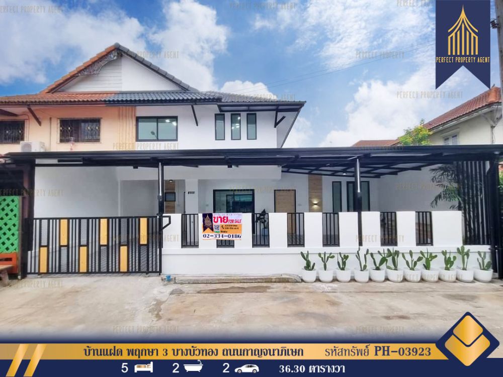 บ้านแฝด พฤกษา 3 บางบัวทอง ถนนกาญจนาภิเษก รีโนเวทใหม่ทั้งหลัง สไตล์โมเดิร์น