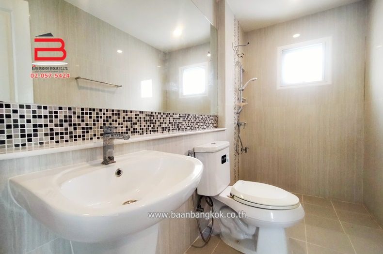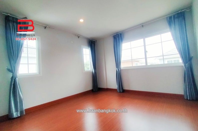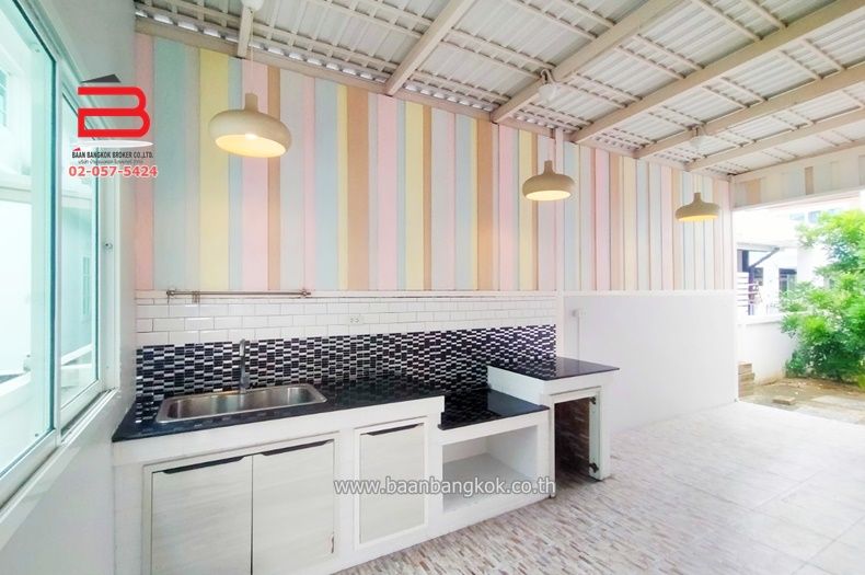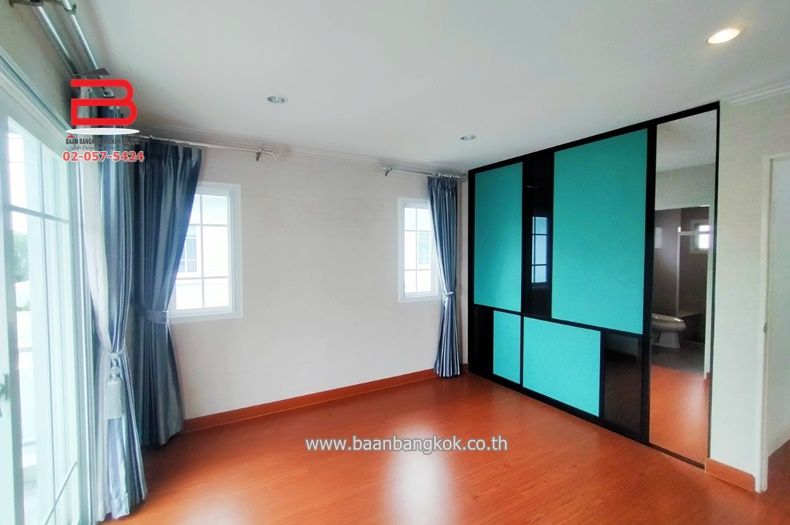 การตกเเต่ง : พื้นชั้นล่างปูแกรนิตโต้ พื้นชั้นบนปูลามิเนต มีกระจกกั้นระหว่างห้องรับแขกและโซนทานข้าว ประตูหน้าต่างใช้วัสดุอย่างดี ยี่ห้อ Windsor ติดกระจกกั้นห้องแต่งตัวแบบพิงค์โกลด์ ติดมุ้งลวด+เหล็กดัด+ม่านบังแดดกัน UV แอร์ 3 เครื่อง มีเครื่องกรองน้ำ+ปั้มน้ำ+แท็งค์น้า มีสวนภายในบ้าน ภายในโครงการมีสิ่งอำนวยความสะดวก อาทิ เช่น รปภ 24 ชม., สระว่ายน้ำ, คลับเฮ้าส์