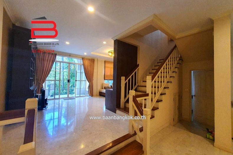 การตกแต่ง : พื้นชั้นล่างปูกระเบื้องหินอ่อน พื้นชั้นบนปูปาร์เก้อย่างดี มีสวนภายในบ้าน ห้องแบ่งเป็นสัดส่วน ต่อเติมชั้นล่างทำเป็นห้องนอนหรือห้องทำงานได้ ต่อเติมห้องนั่งเล่นและห้องแม่บ้านเพิ่ม เฟอร์นิเจอร์ครบ ติดปั้มน้ำ+แท็งค์น้ำ พร้อมแอร์ 6 เครื่อง ภายในโครงการมีสิ่งอำนวยความสะดวกอีกมากมาย อาทิ เช่น รปภ.24ชม. CCTV สวนสาธารณะ สนามเด็กเล่น สระว่ายน้ำ คลับเฮ้าส์ สโมสร