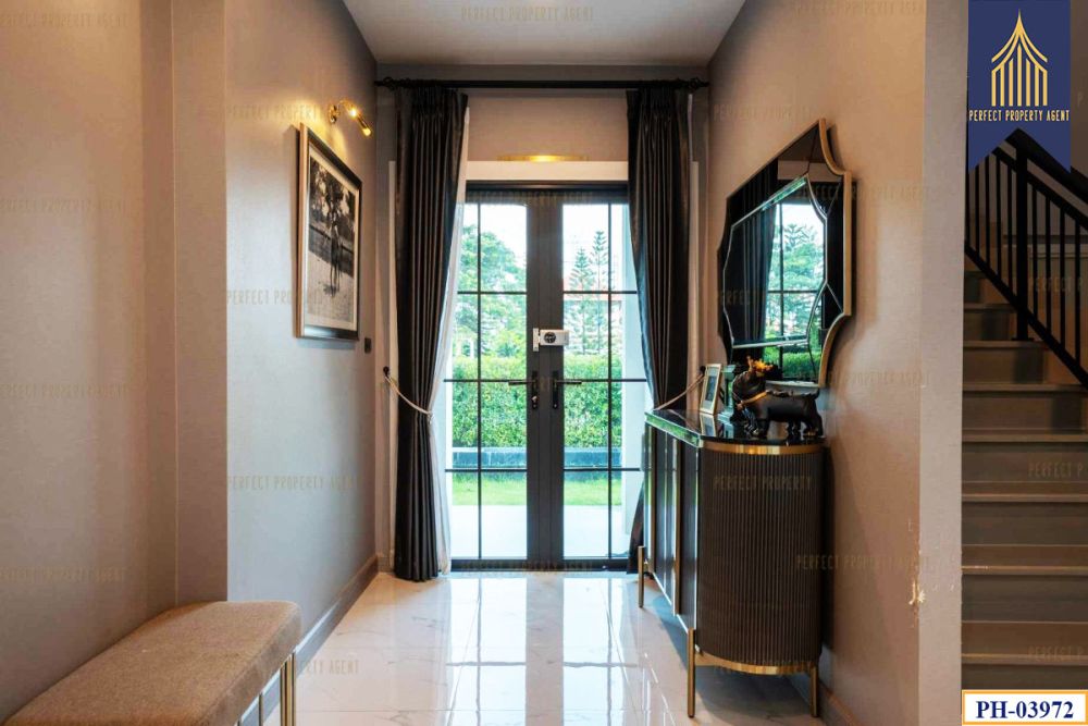 จุดเด่น : บ้านสภาพใหม่ โมเดิร์นคลาสสิคออกแบบสไตล์ Dutch Colonial เฟอร์นิเจอร์นำเข้าจัดเต็มสวยหรูทุกพื้นที่ วิวสวนไม่มีบ้านหลังอื่นบังหน้าบ้าน บรรยากาศร่มรื่นเย็นสบาย เพื่อนบ้านและสังคมสภาพแวดล้อมระดับ Luxury