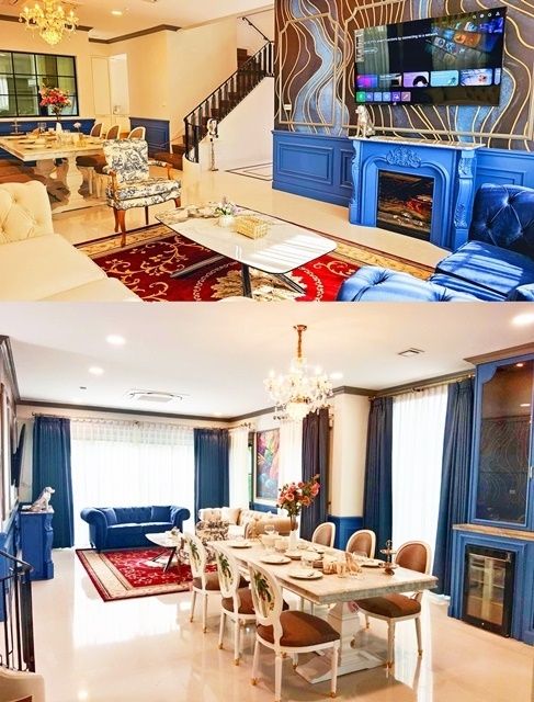 พระรามเก้า-กรุงเทพกรีฑาตัดใหม่ นานาชาติแอสคอต ตลาดนัดสัมมากร ขาย-เช่าคฤหาสน์หรูสไตล์ฝรั่งเศส แปลงมุม เฟอร์หรู 110ตรว. 320ตรม. 329,999B-M 44ลบ. 4นอน 5น้ำ 3จอดรถ นันทวัน