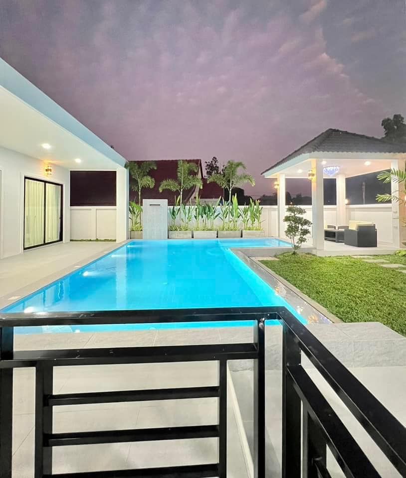 บ้านเดี่ยวสร้างใหม่ชั้นเดียวบนเนื้อที่ 100ตรว.พร้อมสระว่ายน้ำขนาดใหญ่+จากุชชี่+ศาลานั่งเล่น
