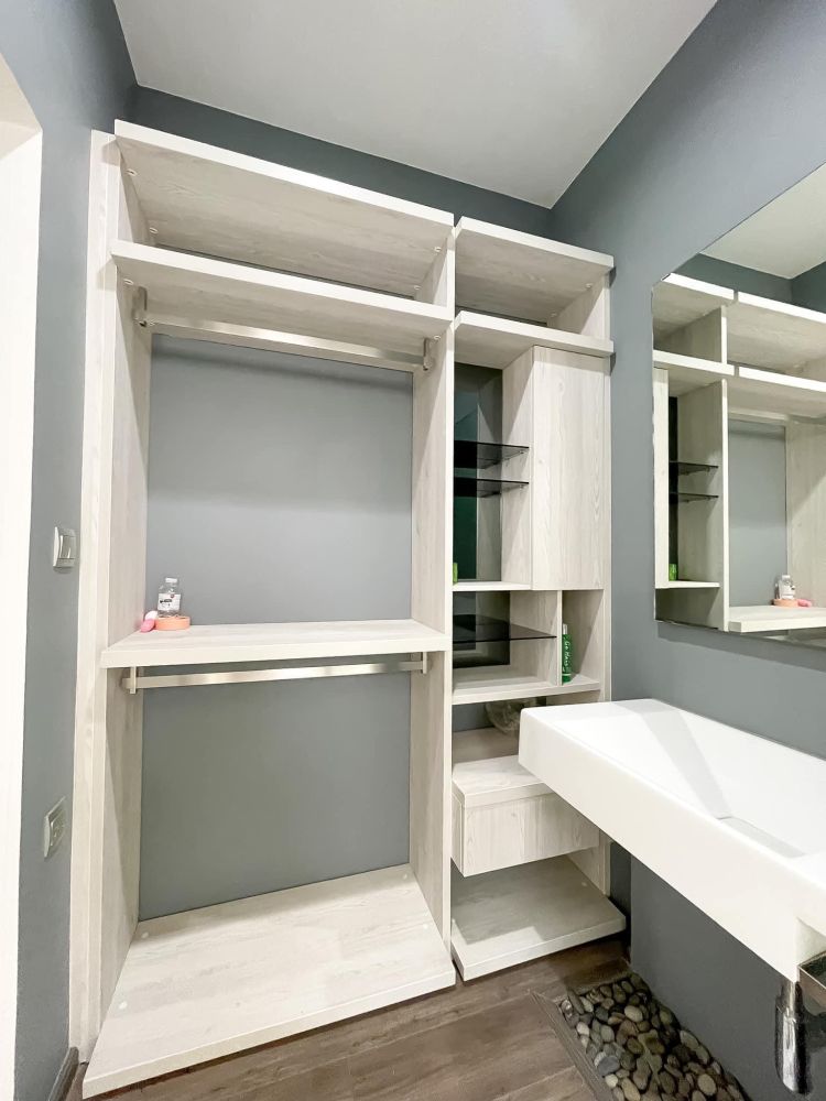 ✅ Built in ตู้เสื้อผ้าห้องนอนเล็กชั้นล่าง, ชั้นวางทีวี, โซนทำงานชั้นล่าง, ตู้เสื้อผ้าห้องนอนใหญ่ชั้นบน