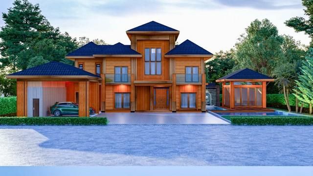 - ด้านนอกประกอบเป็นไม้สักทั้งหลัง ด้านในเป็นแบบทันสมัย