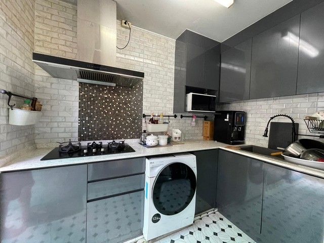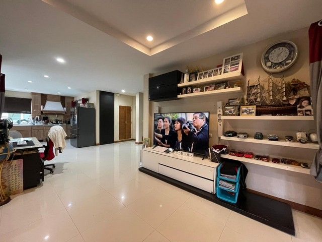 ตกแต่งใหม่สไตล์โมเดิร์น มีห้องแม่บ้าน พร้อมห้องน้ำแม่บ้านแยกส่วน มีโรงจอดรถได้ 4 -5 คัน หน้าบ้านจอดได้อีก 1 คัน