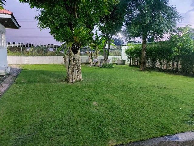 พื้นที่สีเขียวรอบตัวบ้าน มีสนามหญ้ากว้างมากต้นไม้ร่มรื่น