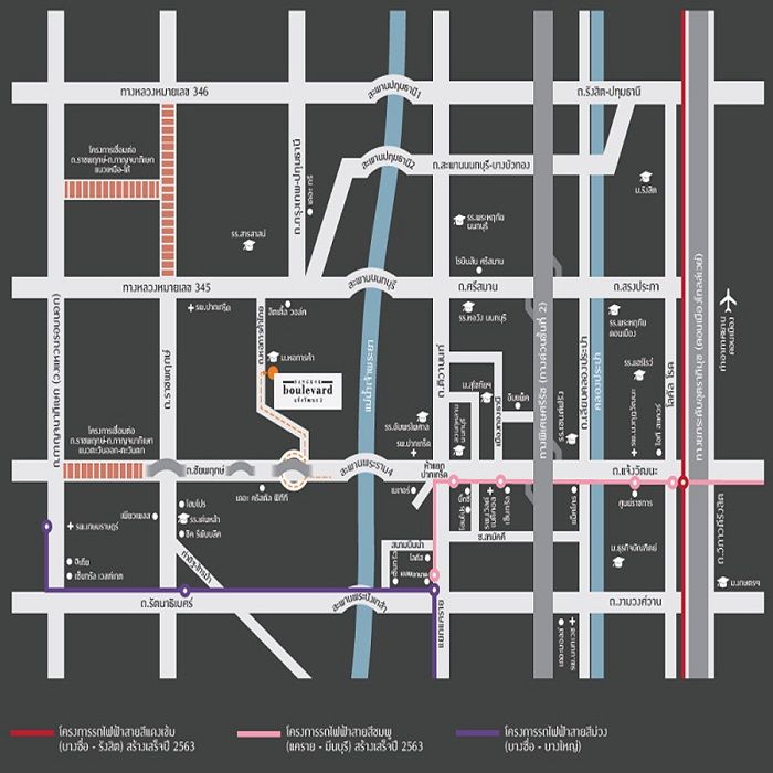 การเดินทาง เริ่มจาก สี่แยกแคราย → ถนนติวานนท์ → ตรงผ่านสามแยกสนามบินน้ำ → เลี้ยวซ้ายห้าแยกปากเกร็ด → ข้ามสะพานพระราม4 → กลับรถ → เลี้ยวซ้ายเข้าถนนหอการค้าไทย → ตรงมาประมาณ 2.1 กม. ก็จะเจอพื้นที่โครงการ Bangkok Boulevard แจ้งวัฒนะ2